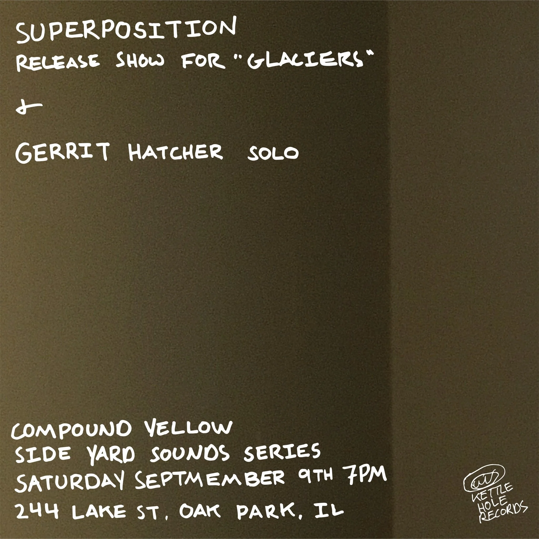 Recorded and mixed throughout 2021 and 2022 at Todd A. Carter’s belair studio, Glaciers was created from composed improvisations and improvised compositions mostly originating on the piano, Rhodes, organ, and/or synthesizers. The final work revealed itself as layers were added and the pieces were mixed, edited and reshuffled. Longer sections broken into shorter pieces and shorter pieces combined into longer sections. It was finished when we realized we were done. Take advantage of the tools at hand, and find satisfying ways to pass the time. Make a start and don’t over think it. Glaciers releases on Kettle Hole Records August 25th, 2023, on CD as well as digitally. Superposition will perform live at Oak Park’s Compound Yellow (244 Lake St., Oak Park, IL) on Saturday September 9th supported with an opening solo set by Gerrit Hatcher.